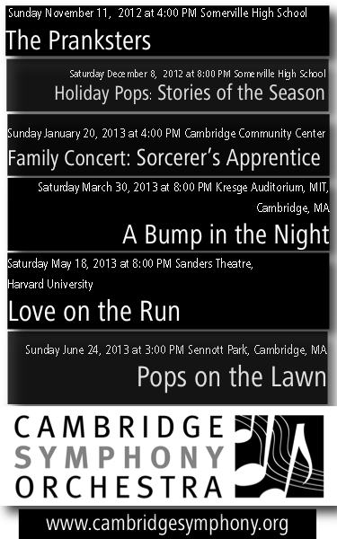 Still upcoming as of the date of this post, come see the CSO play our May concert, “Love on the Run”.