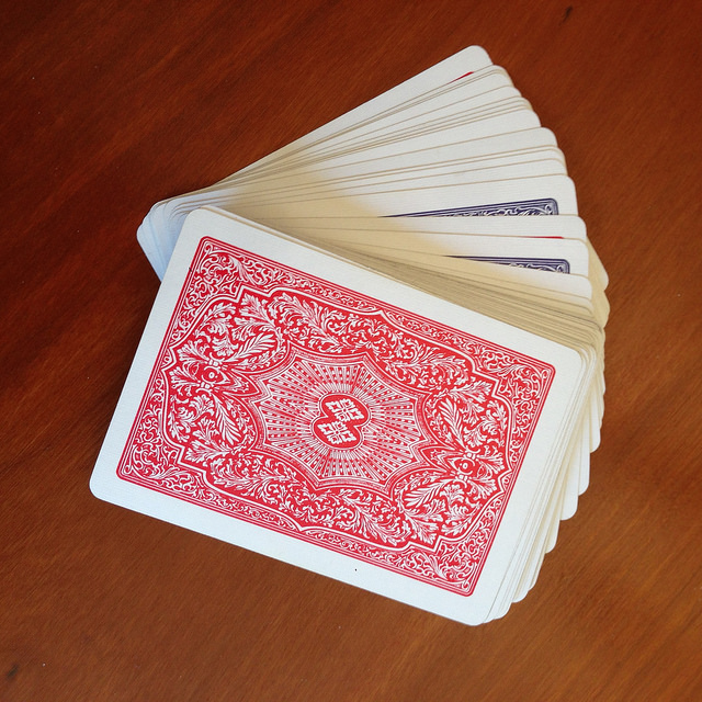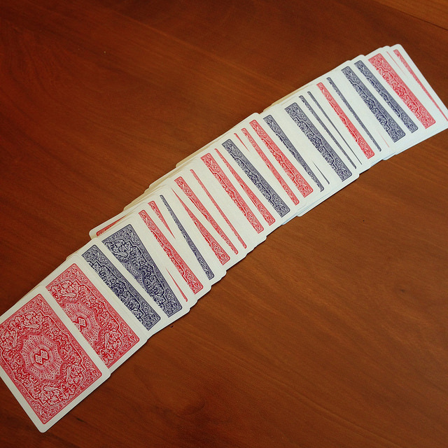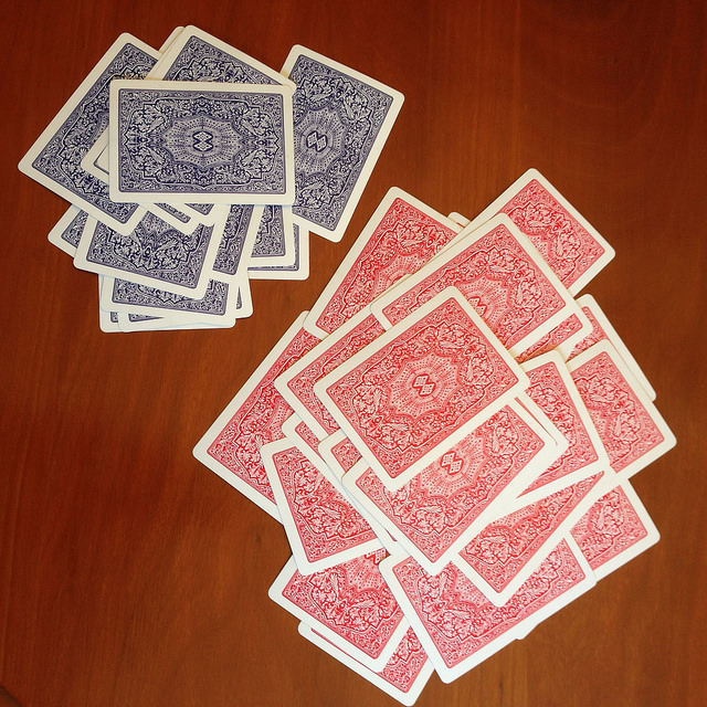 Walked around my place, stood for a moment staring at my humble board game collection. And there they were… a deck of red cards and a deck of blue cards.
