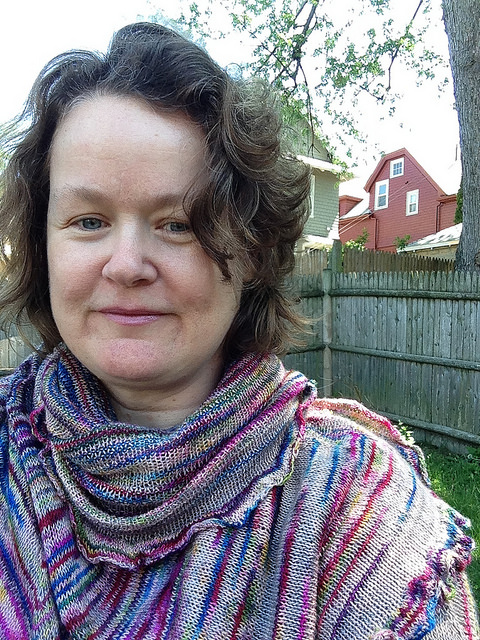 My first design from 2010 made it to my new website at last. I created this pattern to wear while dog sledding on a winter trip to Quebec. My experience with winter sports has taught me not to wear scarves skiing or sledding, cuz you never know what might grab an end and a) make you lose your scarf or b) strangle you.