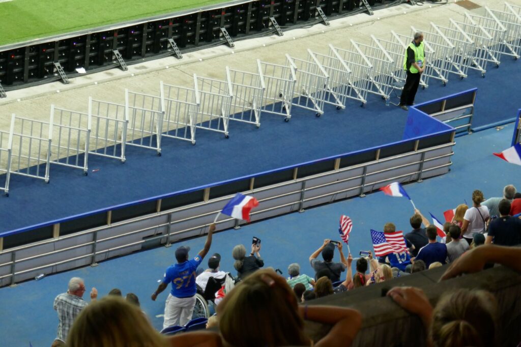 A video from the crowd’s point of view before the game. The stadium was intermixed France and US fans in red, white, and blue.