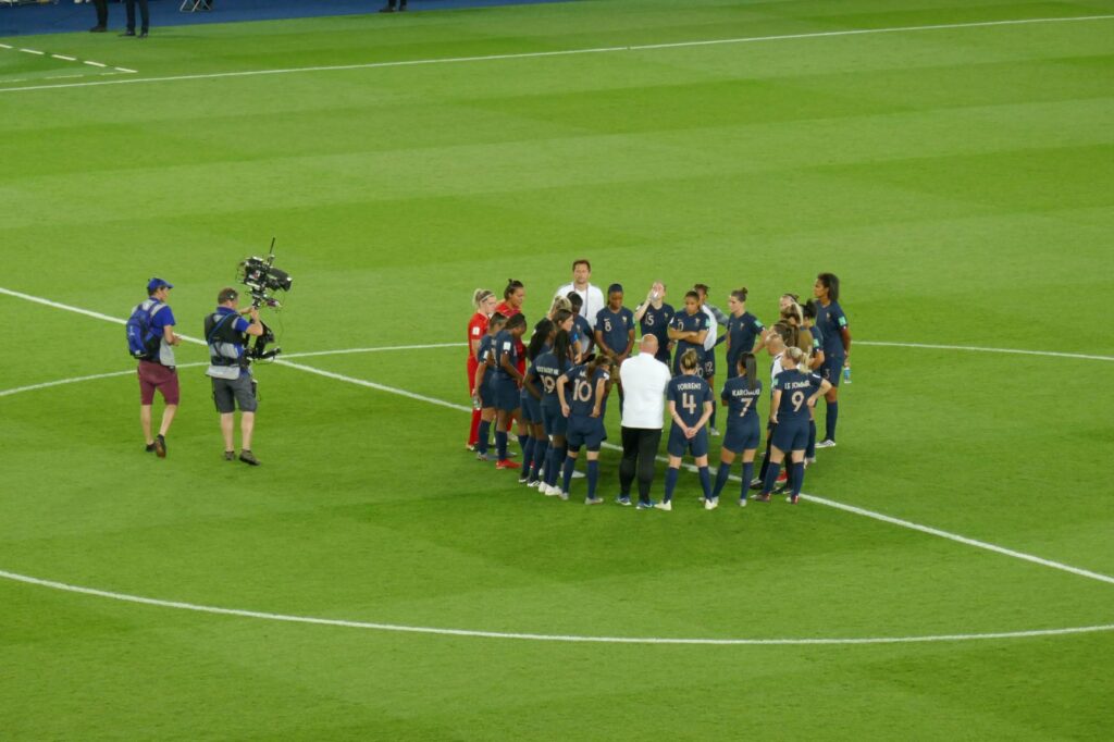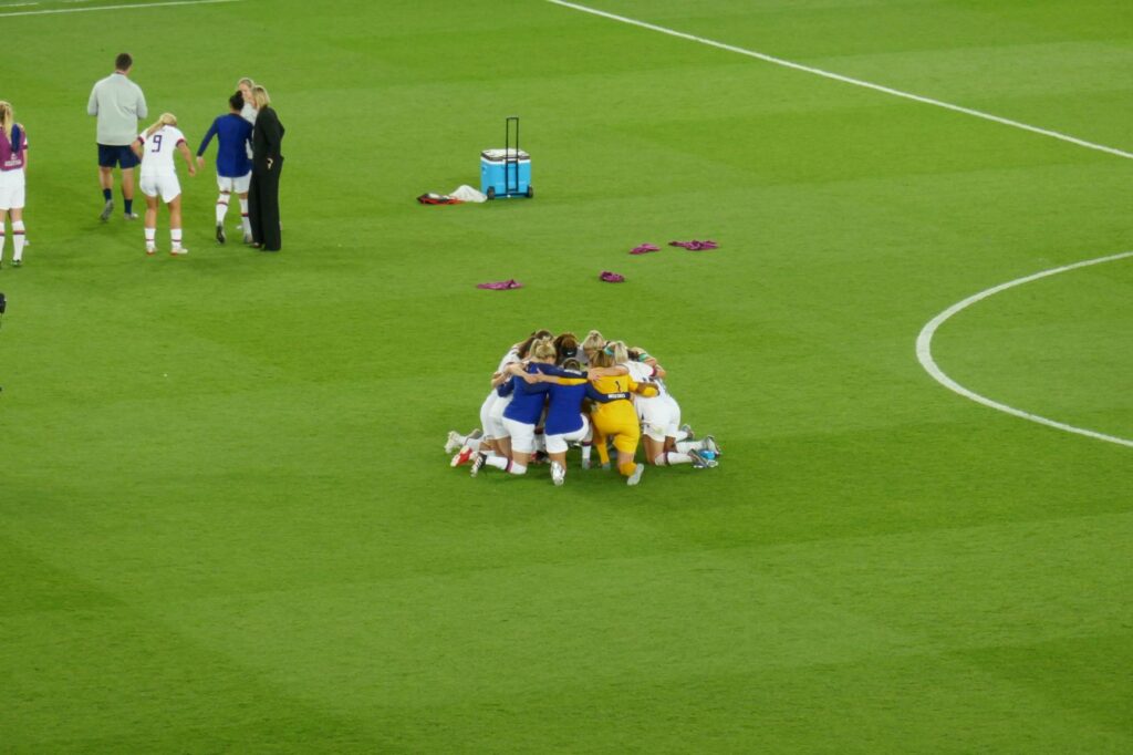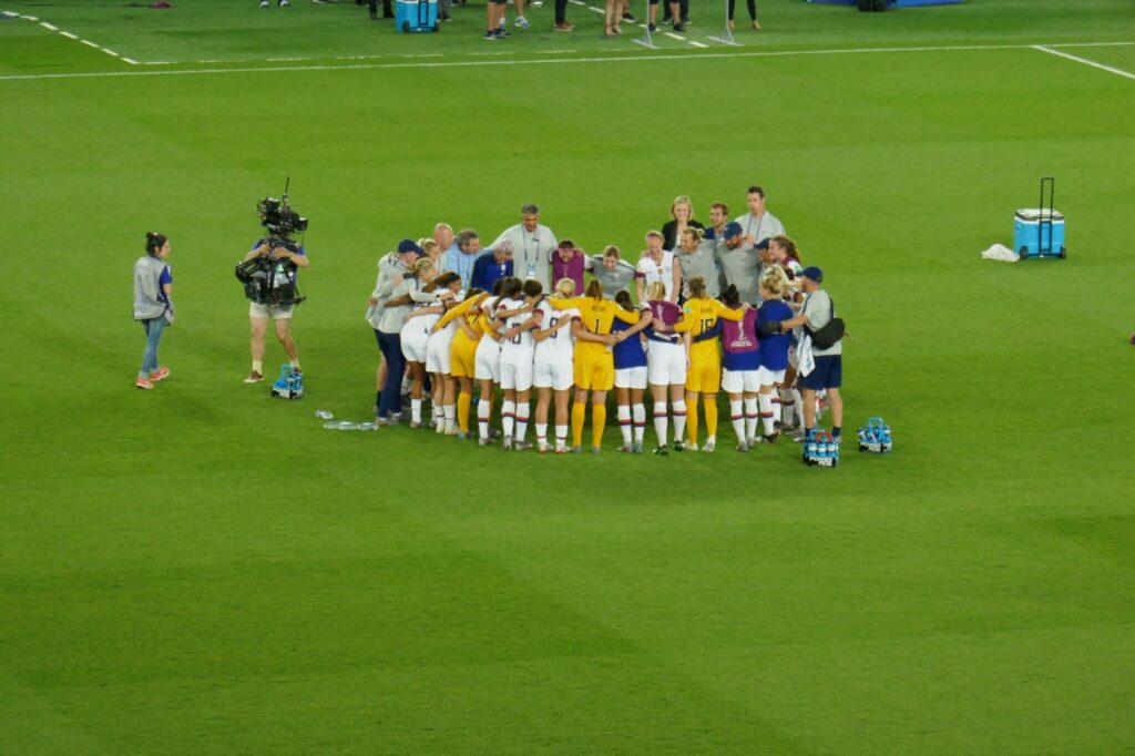 Post game huddle, USWNT, Le Havre, June 20, 2019